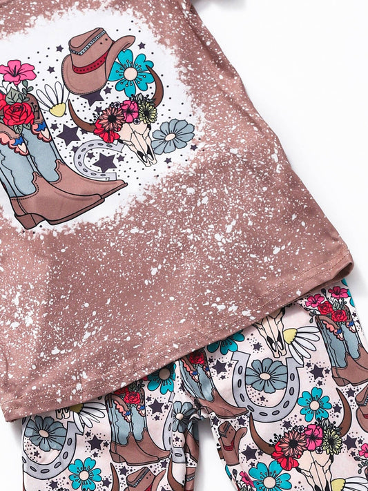 Girls Boots Flower Bleached Western Sets