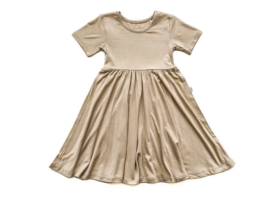Tan Short Sleeve Twirl Dress